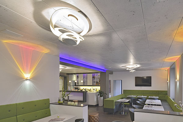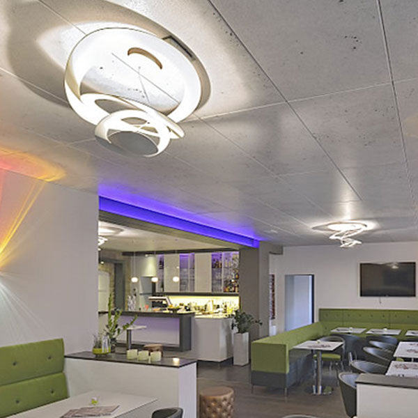 Per le loro caratteristiche intrinseche, i controsoffitti in cartongesso rappresentano la soluzione più indicata per risolvere le problematiche distributive ed impiantistiche, fornendo, inoltre, elevate prestazioni di tipo acustico, termico e di comportamento al fuoco.