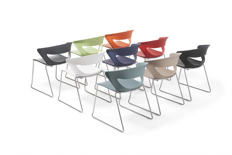 Sedia impilabile multiuso con monoscocca in polipropilene