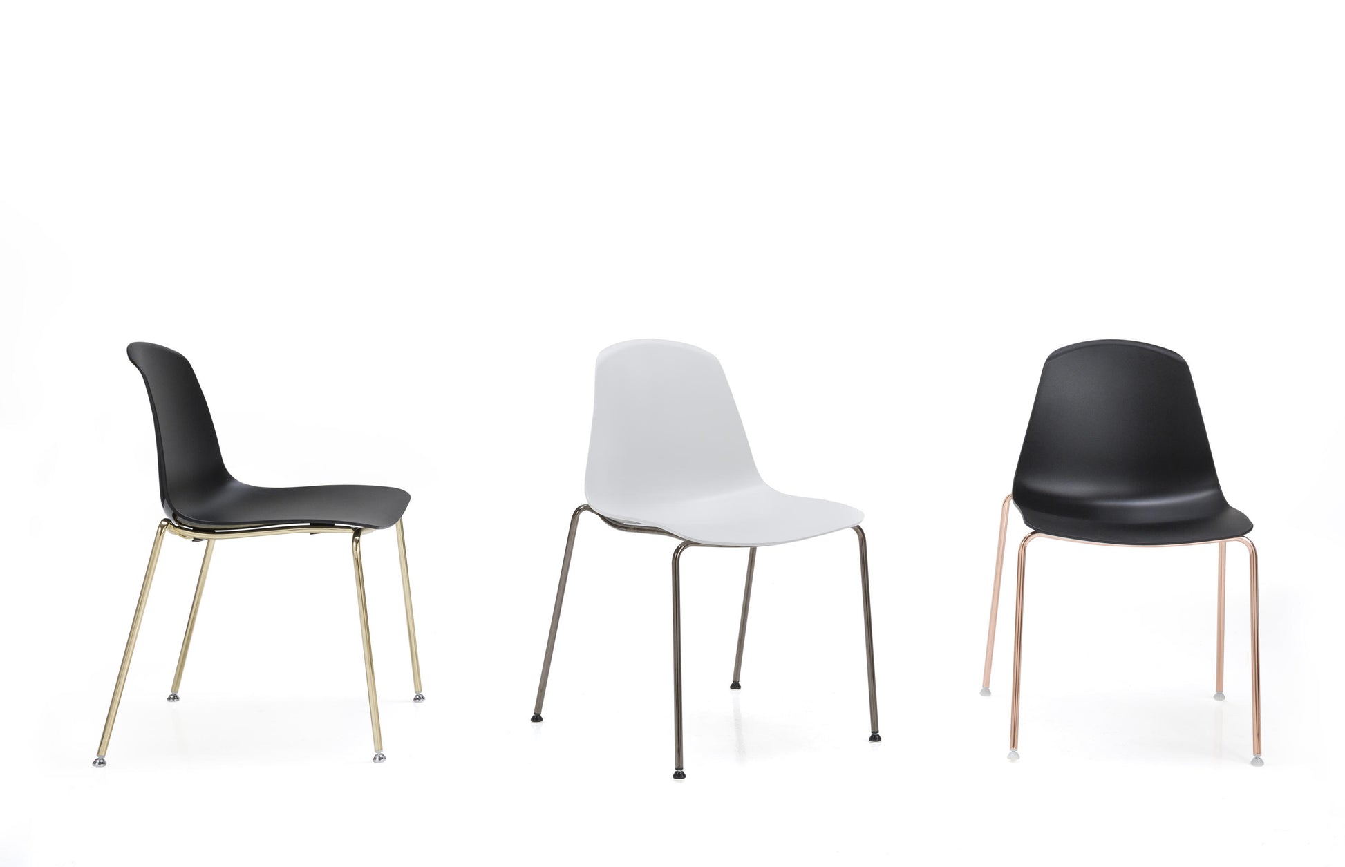 - Sedile/Schienale scocca in polipropilene finitura goffrata, disponibile nei colori NERO, BIANCO, GRIGIO, AVORIO, VERDE ACQUA E CIPRIA