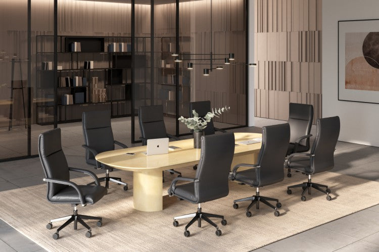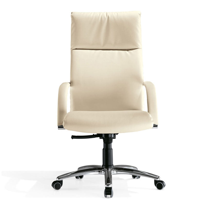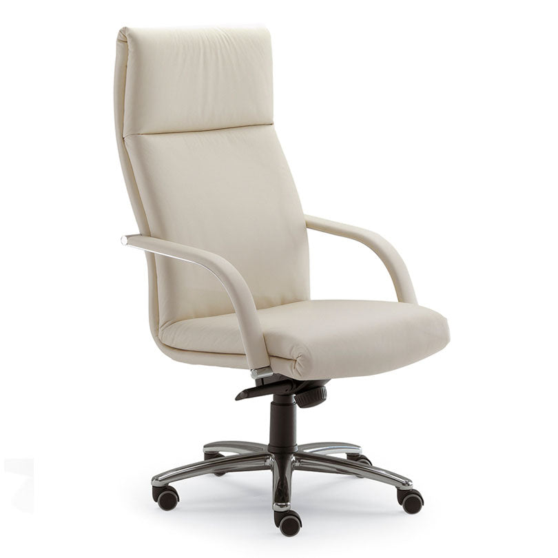Sedia da ufficio direzionale con avvolgente scocca imbottita in Ecopelle a schienale Alto